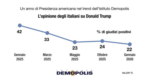 L’effetto “Referendum” ha anche un riflesso sull’immagine dell’Esecutivo: la fiducia nella Premier Giorgia Meloni passa dal 42% di febbraio al 40% odierno, rimanendo comunque alta. Più netto risulta il calo di apprezzamento nel Governo: 3 punti in meno, dal 39 al 36%.