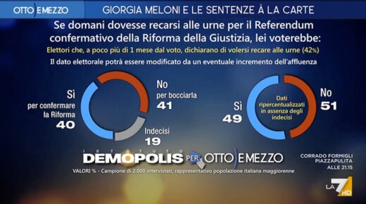 È la fotografia che emerge dal sondaggio condotto dall’Istituto Demopolis a poco più di un mese dal Referendum costituzionale sulla Giustizia.
